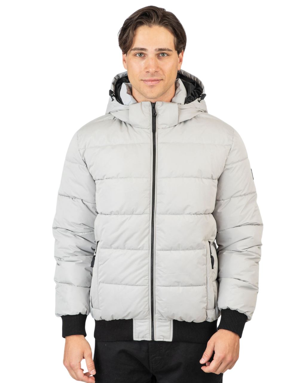 Rebase Ανδρικό Μπουφάν Puffer Bomber Γκρι Ανοιχτό